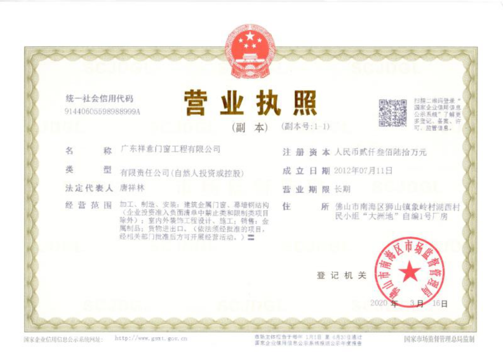 廣東祥意門窗工程有限公司是一家專注鋁合金門窗工程及門窗加工、制作的優(yōu)質企業。公司憑著精湛的技術服務和優(yōu)良的售后服務,已成功完成多個優(yōu)質項目。
